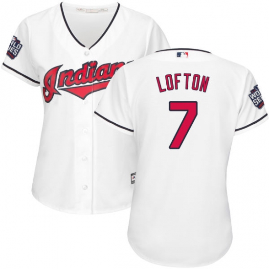 Home>MLB>Cleveland Indians>Kenny Lofton>Women's Majestic Cleveland Indians #7 Kenny Lofton Authentic White Home 2016 World Series Bound Cool Base MLB Jersey