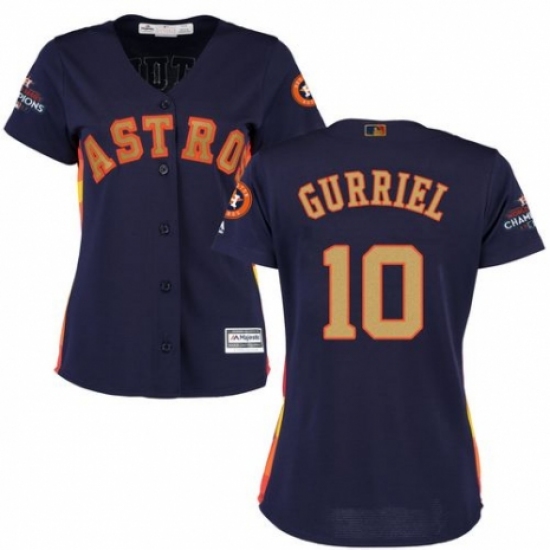 >Women's Majestic Houston Astros #10 Yuli Gurriel Authentic Navy Blue Alternate 2018 Gold Program Cool Base MLB Jersey