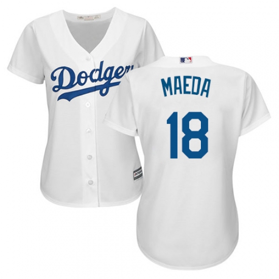 Home>MLB>Los Angeles Dodgers>Kenta Maeda>Women's Majestic Los Angeles Dodgers #18 Kenta Maeda Authentic White Home Cool Base MLB Jersey