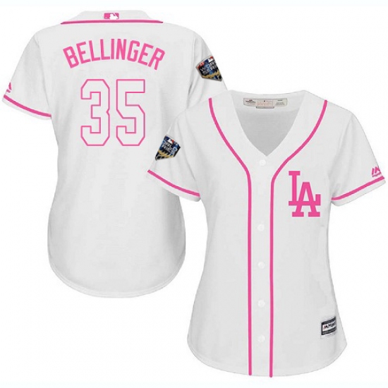>Women's Majestic Los Angeles Dodgers #35 Cody Bellinger Authentic White Fashion Cool Base 2018 World Series MLB Jersey