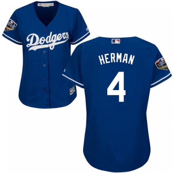 Women's Majestic Los Angeles Dodgers #4 Babe Herman Authentic Royal Blue Alternate Cool Base 2018 World Series MLB Jersey