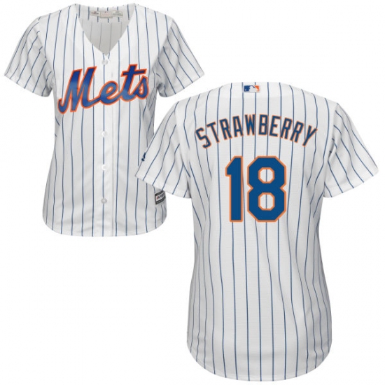 Home>MLB>New York Mets>Darryl Strawberry>Women's Majestic New York Mets #18 Darryl Strawberry Replica White Home Cool Base MLB Jersey