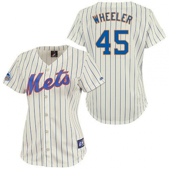 Home>MLB>New York Mets>Zack Wheeler>Women's Majestic New York Mets #45 Zack Wheeler Authentic Cream/Blue Strip MLB Jersey
