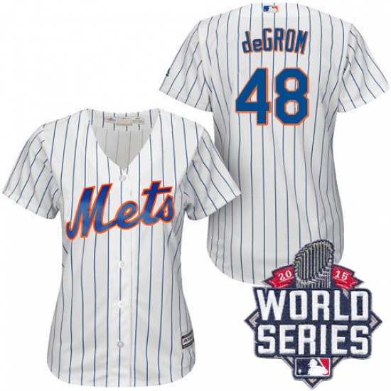 Home>MLB>New York Mets>Jacob deGrom>Women's Majestic New York Mets #48 Jacob deGrom Authentic White/Blue Strip 2015 World Series MLB Jersey