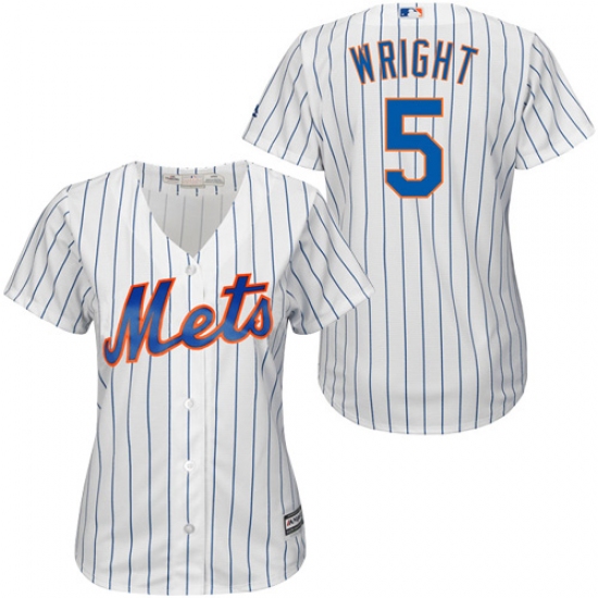 Home>MLB>New York Mets>David Wright>Women's Majestic New York Mets #5 David Wright Authentic White/Blue Strip MLB Jersey
