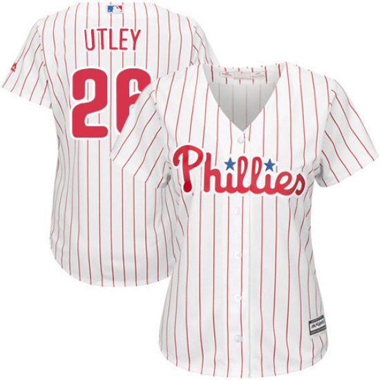 Women's Majestic Philadelphia Phillies #26 Chase Utley Authentic White/Red Strip Home Cool Base MLB Jersey