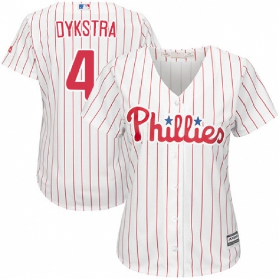 Women's Majestic Philadelphia Phillies #4 Lenny Dykstra Authentic White/Red Strip Home Cool Base MLB Jersey