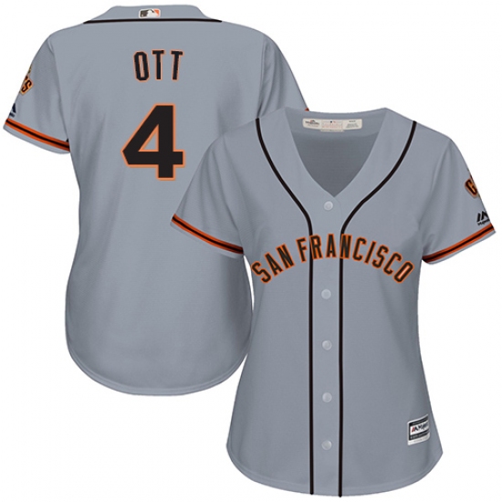 Women's Majestic San Francisco Giants #4 Mel Ott Replica Grey Road Cool Base MLB Jersey