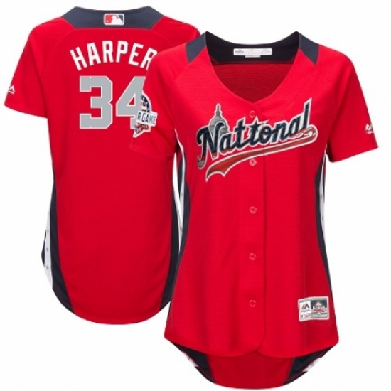 >Women's Majestic Washington Nationals #34 Bryce Harper Game Red National League 2018 MLB All-Star MLB Jersey