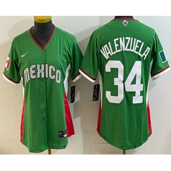 Women's Mexico #34 Fernando Valenzuela Green 2026 World Baseball Classic Cool Base Jersey