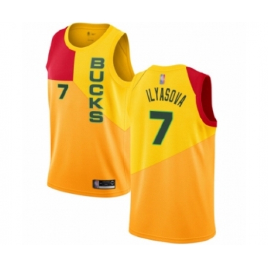 >Women's Milwaukee Bucks #7 Ersan Ilyasova Swingman Yellow Basketball Jersey - City Edition