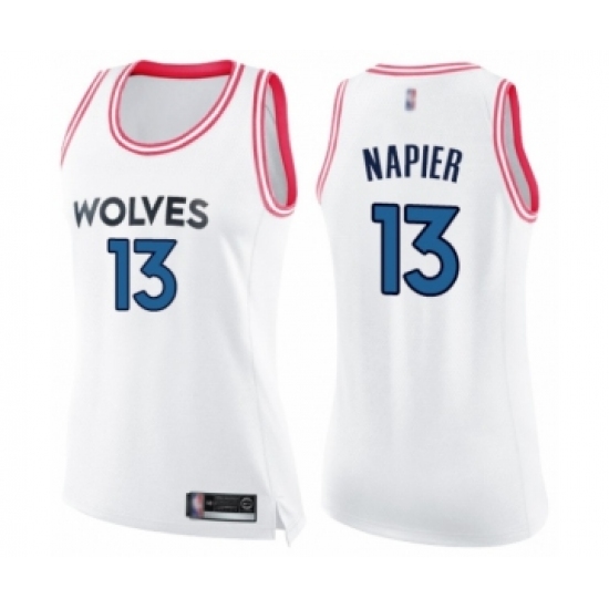 Women's Minnesota Timberwolves #13 Shabazz Napier Swingman White Pink Fashion Basketball Jersey