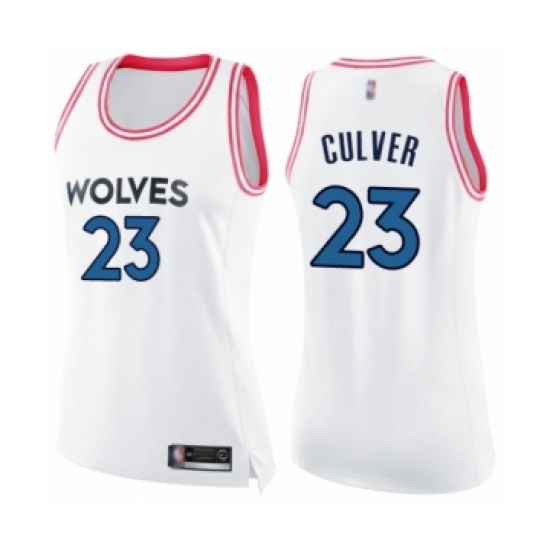 >Women's Minnesota Timberwolves #23 Jarrett Culver Swingman White Pink Fashion Basketball Jersey