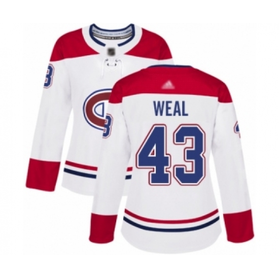 >Women's Montreal Canadiens #43 Jordan Weal Authentic White Away Hockey Jersey
