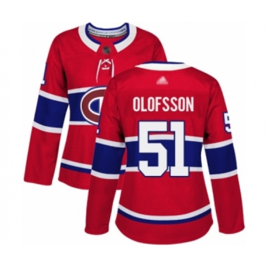 Women's Montreal Canadiens #51 Gustav Olofsson Authentic Red Home Hockey Jersey