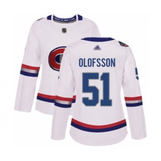Women's Montreal Canadiens #51 Gustav Olofsson Authentic White 2017 100 Classic Hockey Jersey