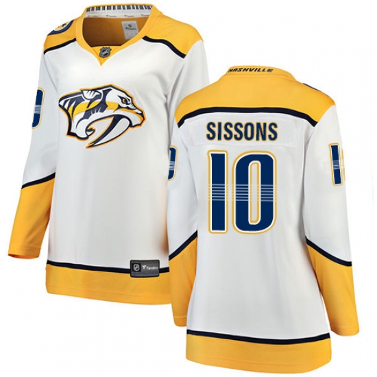 Home>NHL>Nashville Predators>Colton Sissons>Women's Nashville Predators #10 Colton Sissons Fanatics Branded White Away Breakaway NHL Jersey