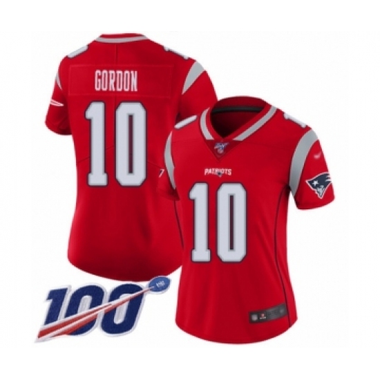 >Women's New England Patriots #10 Josh Gordon Limited Red Inverted Legend 100th Season Football Jersey