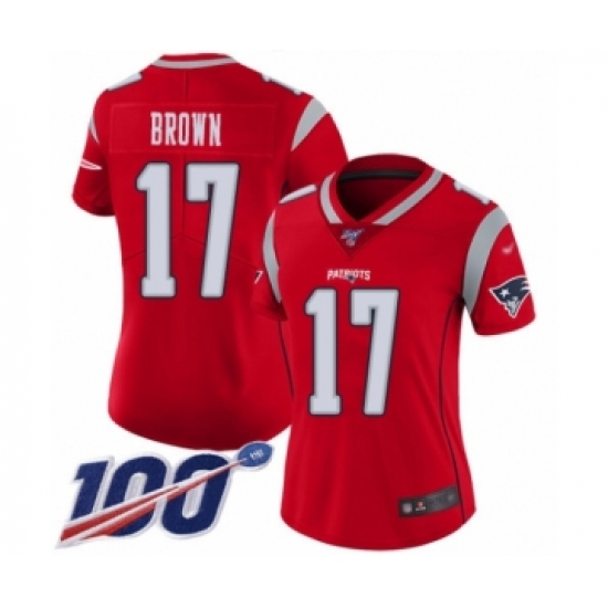 Women's New England Patriots #17 Antonio Brown Limited Red Inverted Legend 100th Season Football Jersey