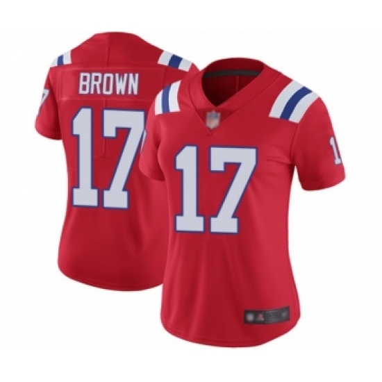 >Women's New England Patriots #17 Antonio Brown Red Alternate Vapor Untouchable Limited Player Football Jersey