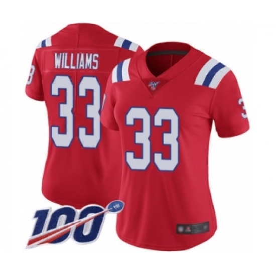 Women's New England Patriots #33 Joejuan Williams Red Alternate Vapor Untouchable Limited Player 100th Season Football Jersey