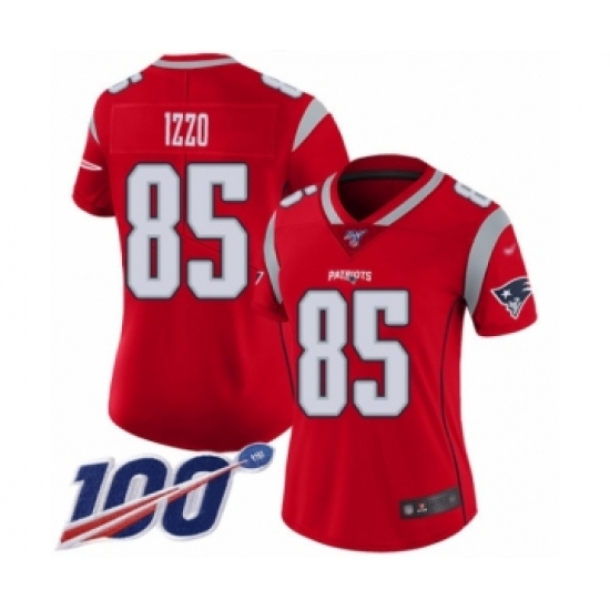>Women's New England Patriots #85 Ryan Izzo Limited Red Inverted Legend 100th Season Football Jersey