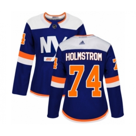 >Women's New York Islanders #74 Simon Holmstrom Authentic Blue Alternate Hockey Jersey
