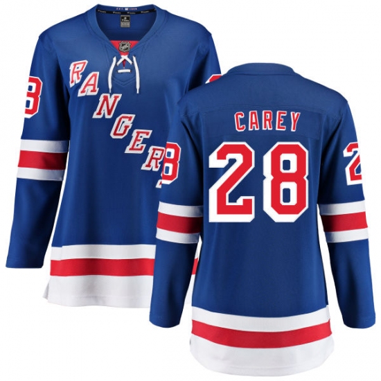 Home>NHL>New York Rangers>Paul Carey>Women's New York Rangers #28 Paul Carey Fanatics Branded Royal Blue Home Breakaway NHL Jersey