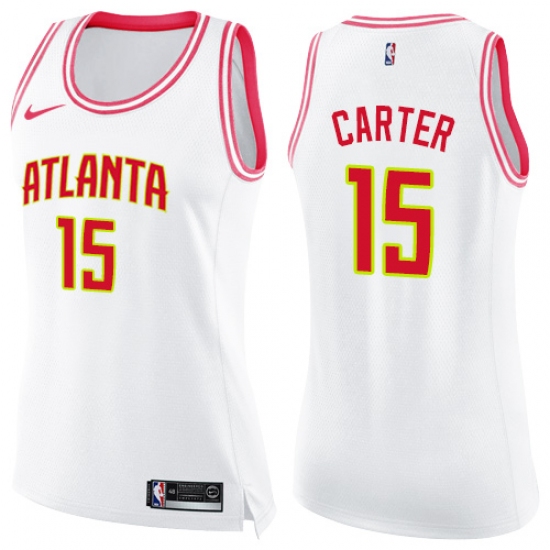 Women's Nike Atlanta Hawks #15 Vince Carter Swingman White Pink Fashion NBA Jersey
