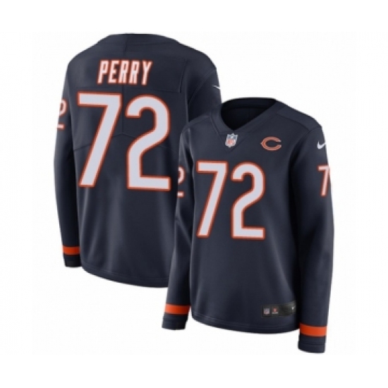 >Women's Nike Chicago Bears #72 William Perry Limited Navy Blue Therma Long Sleeve NFL Jersey