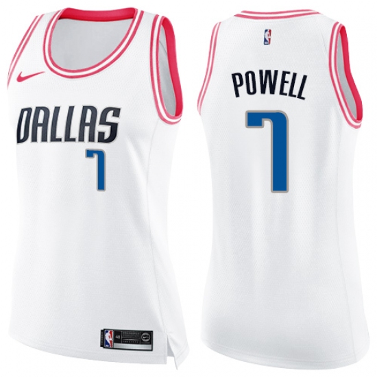 Women's Nike Dallas Mavericks #7 Dwight Powell Swingman White Pink Fashion NBA Jersey