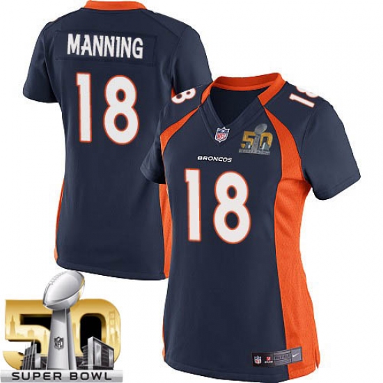 Home>NFL>Denver Broncos>Peyton Manning>Women's Nike Denver Broncos #18 Peyton Manning Elite Navy Blue Alternate Super Bowl 50 Bound NFL Jersey