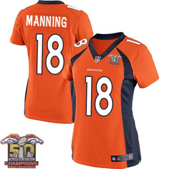 Home>NFL>Denver Broncos>Peyton Manning>Women's Nike Denver Broncos #18 Peyton Manning Elite Orange Team Color Super Bowl 50 Champions NFL Jersey