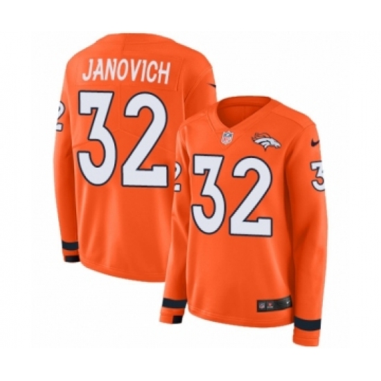 >Women's Nike Denver Broncos #32 Andy Janovich Limited Orange Therma Long Sleeve NFL Jersey