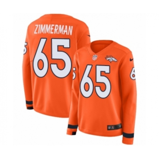 >Women's Nike Denver Broncos #65 Gary Zimmerman Limited Orange Therma Long Sleeve NFL Jersey