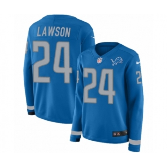 >Women's Nike Detroit Lions #24 Nevin Lawson Limited Blue Therma Long Sleeve NFL Jersey