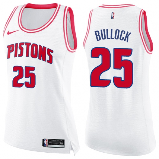 Women's Nike Detroit Pistons #25 Reggie Bullock Swingman White Pink Fashion NBA Jersey