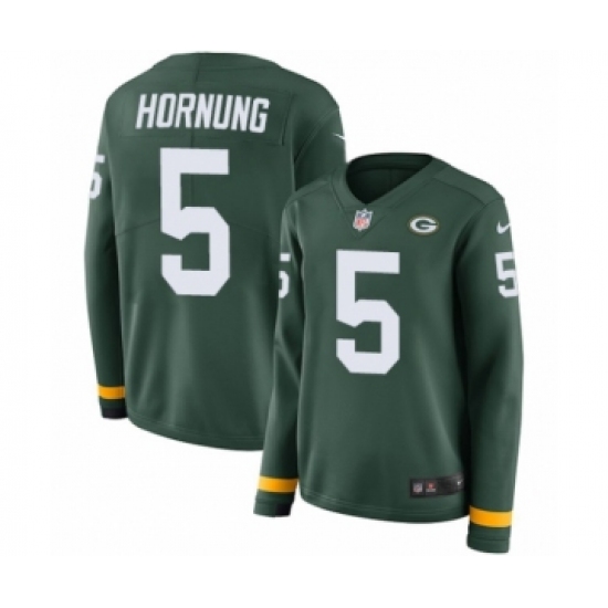 Women's Nike Green Bay Packers #5 Paul Hornung Limited Green Therma Long Sleeve NFL Jersey