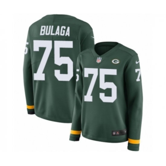 Women's Nike Green Bay Packers #75 Bryan Bulaga Limited Green Therma Long Sleeve NFL Jersey