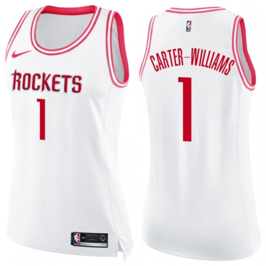>Women's Nike Houston Rockets #1 Michael Carter-Williams Swingman White Pink Fashion NBA Jersey