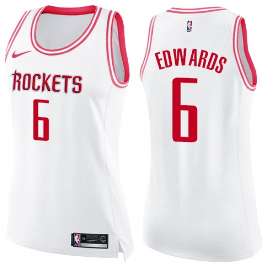 Women's Nike Houston Rockets #6 Vincent Edwards Swingman White Pink Fashion NBA Jersey