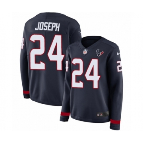 >Women's Nike Houston Texans #24 Johnathan Joseph Limited Navy Blue Therma Long Sleeve NFL Jersey
