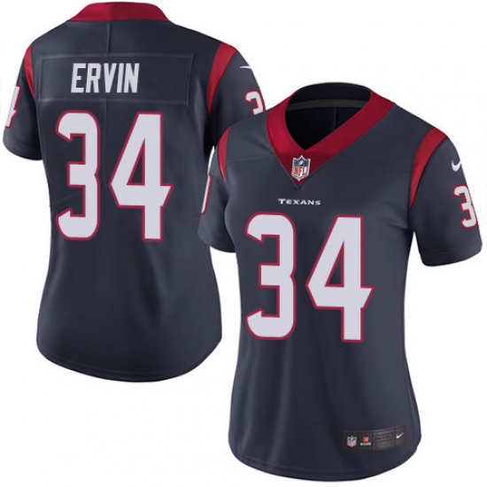 Women's Nike Houston Texans #34 Tyler Ervin Elite Navy Blue Team Color NFL Jersey
