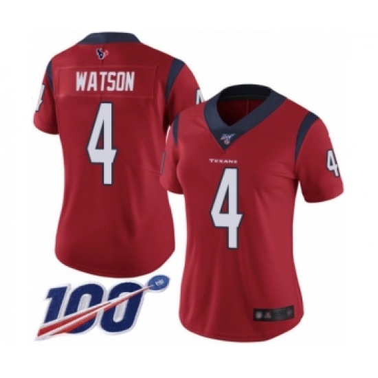 Women's Nike Houston Texans #4 Deshaun Watson Red Alternate Vapor Untouchable Limited Player 100th Season NFL Jersey