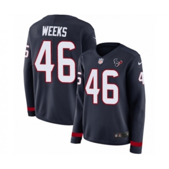 >Women's Nike Houston Texans #46 Jon Weeks Limited Navy Blue Therma Long Sleeve NFL Jersey