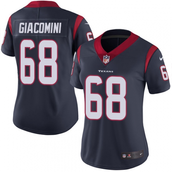 Women's Nike Houston Texans #68 Breno Giacomini Elite Navy Blue Team Color NFL Jersey