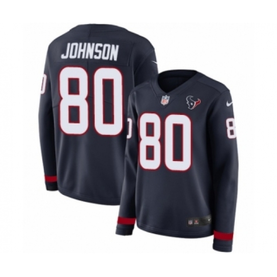 >Women's Nike Houston Texans #80 Andre Johnson Limited Navy Blue Therma Long Sleeve NFL Jersey