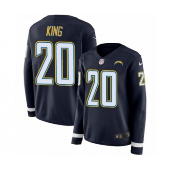 >Women's Nike Los Angeles Chargers #20 Desmond King Limited Navy Blue Therma Long Sleeve NFL Jersey