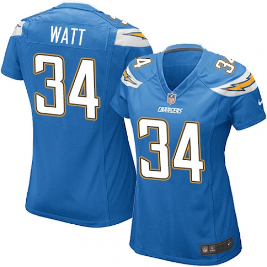 Home>NFL>Los Angeles Chargers>Derek Watt>Women's Nike Los Angeles Chargers #34 Derek Watt Game Electric Blue Alternate NFL Jersey