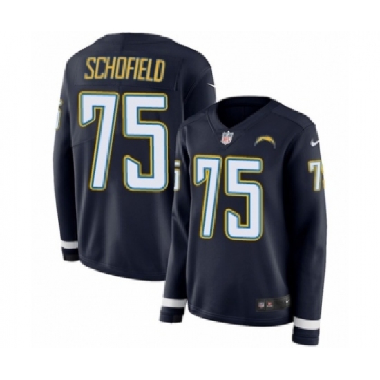 >Women's Nike Los Angeles Chargers #75 Michael Schofield Limited Navy Blue Therma Long Sleeve NFL Jersey